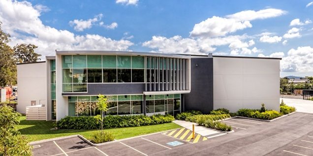 This warehouse with ancillary office has a total area of 2,880sq.m and is constructed of precast concrete tilt up panels and structural steel. Making a statement with its high standard of architectural design, detail and finishes, this building also received comment from the client’s quantity surveyor that its warehouse roof, a design developed under direction of ASI Build, is one of the most cost effective they have seen.